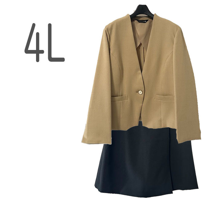 - ●新品/2点/スーツ/ノーカラージャケット/キュロットスカート/4L/キャメル/黒/レディース●&1052
