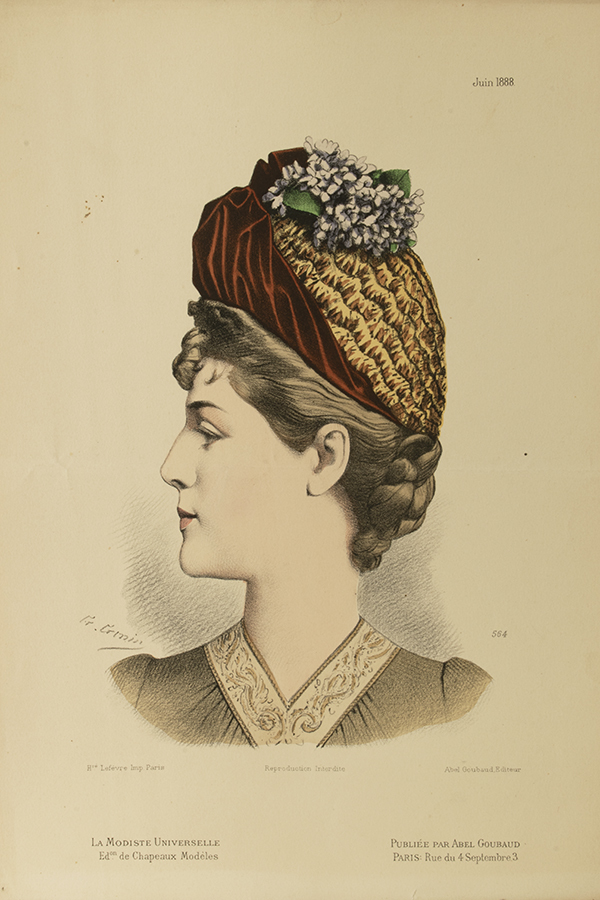 当時流行していた帽子(被り物)を追ったリトグラフで、前オーナーがコレクションしていたと思われるものを