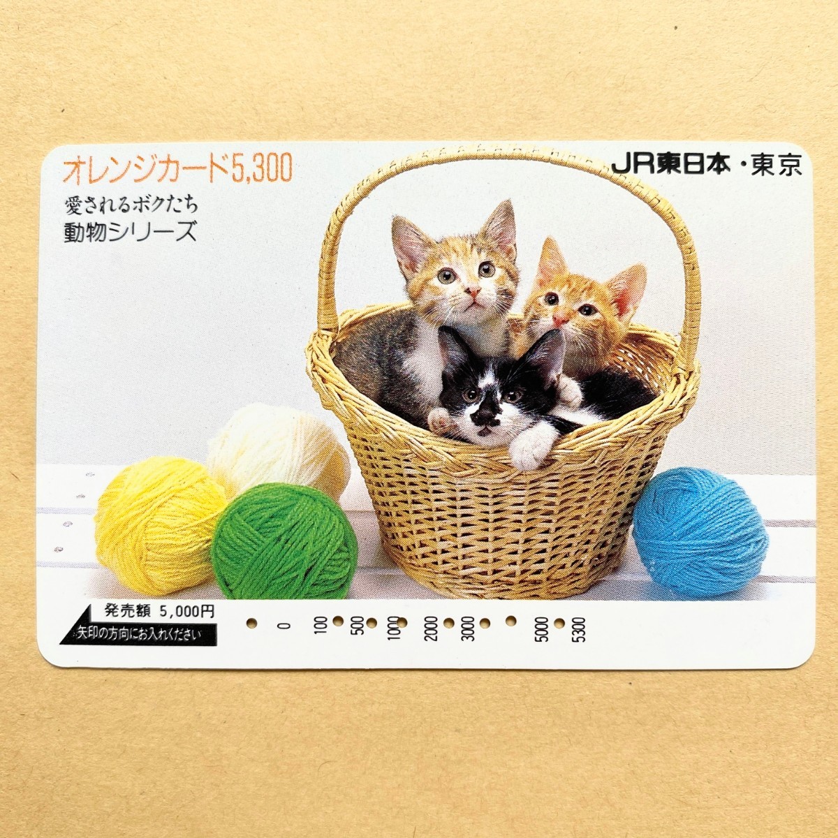 - 【使用済】 オレンジカード JR東日本 カゴの中の子猫