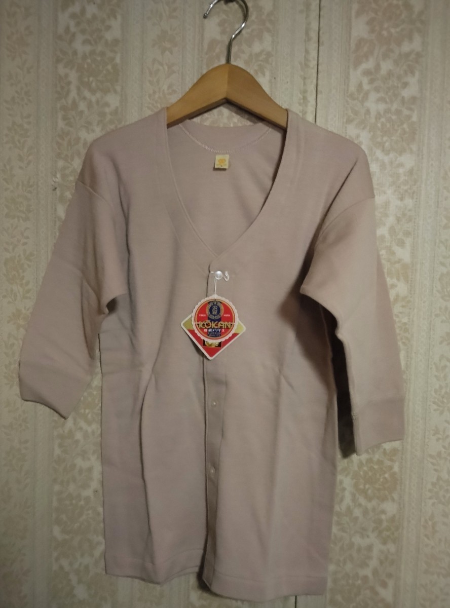 > Vintage Japanese Vintage Under Wear 未使用品 公冠メリアス 高級メリアス 純毛 前ボタン前開き 六分袖 ウール肌着 毛100% ビンテージ
