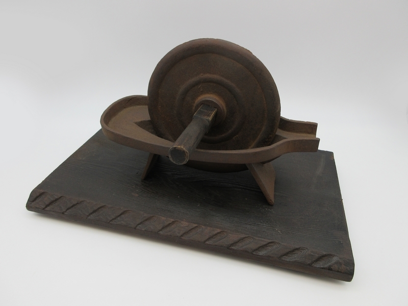 - 薬研 ■ 時代 やげん 漢方 調剤道具 くすりおろし [長さ約31㎝] 木製台付属 古民具 古道具 №9465■