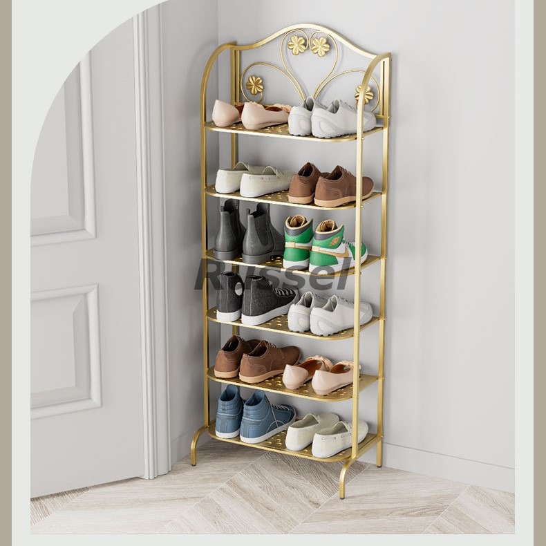 > シューズ ラック 6段 凹凸 デザイン おしゃれ かわいい 収納 キャビネット 下駄箱 靴箱 大容量 玄関 滑り止め 付き ゴールド シルバー