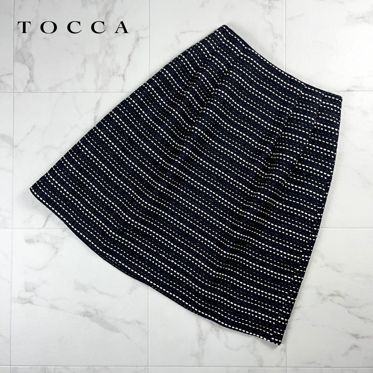 - 美品 TOCCA トッカ ステッチ刺繍 フレアスカート 膝丈 裏地あり レディース ボトムス 黒 ブラック サイズ0*MC64