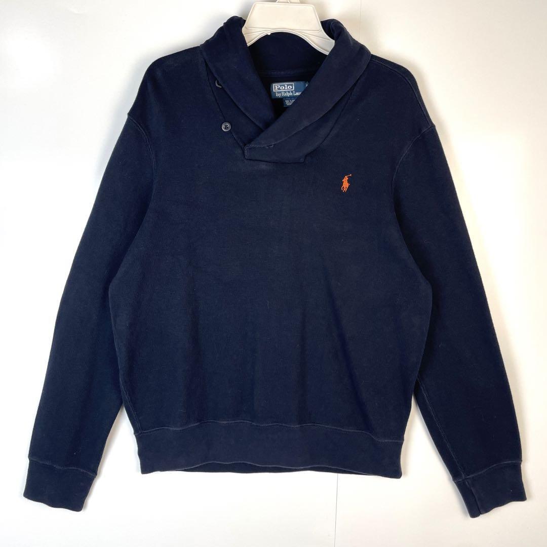 - ラルフローレンPoloRalphLaurenショールカラーコットンニットロゴ刺繍