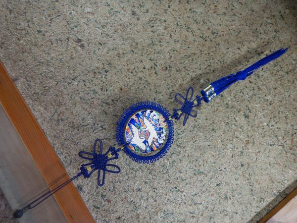 - 壁掛け 中華 春節 青 観 鶴 金属板 紐 L1M位 きれい 直径14.5CM 吊るし 飾り 旧正月 中国 漢人 華人