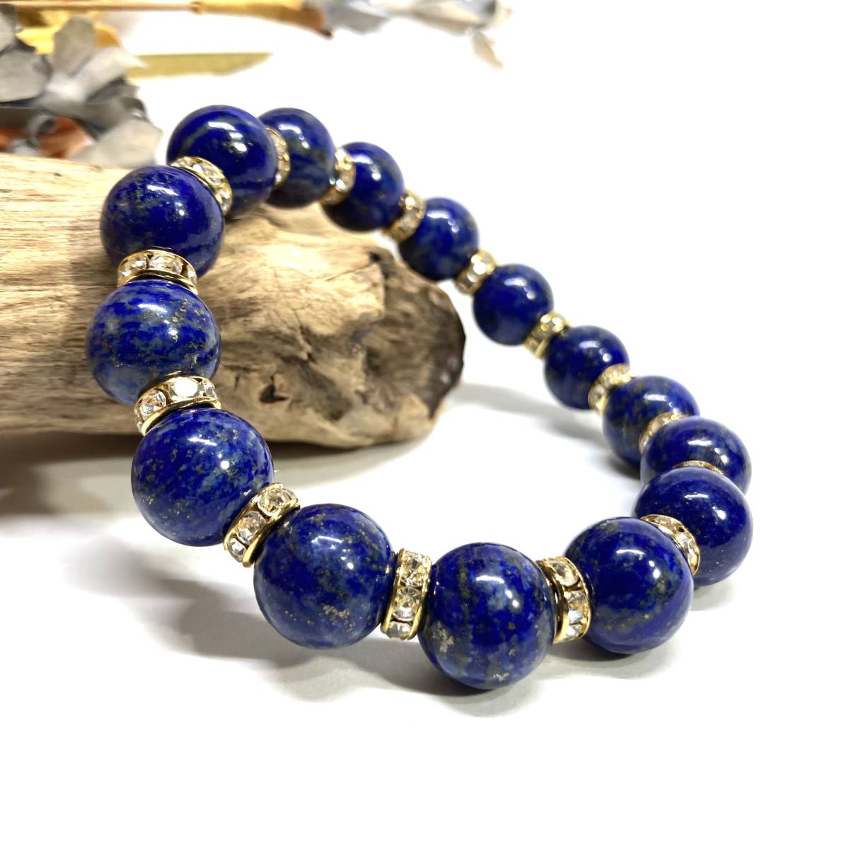 - ラピスラズリ パワーストーン ブレスレット (ロンデル:ゴールド) 12mm メンズ・レディース 天然石ブレス