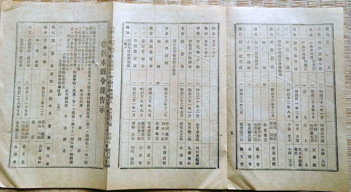 - f24021221〇明治布告布達 令達告示 小学校教員検定用教科書 師範学校程度 栃木県 明治31年〇和本古書古文書