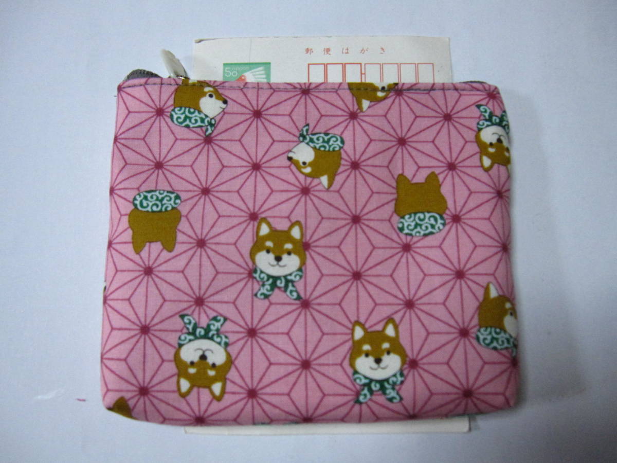 - 手作り 小物 ポーチ ピンク 柴犬 麻の葉 模様 和柄 唐草 小紋 ハンドメイド 動物 犬 財布 充電器 男女 兼用 秋 動物 可愛い お洒落 綿 祝い