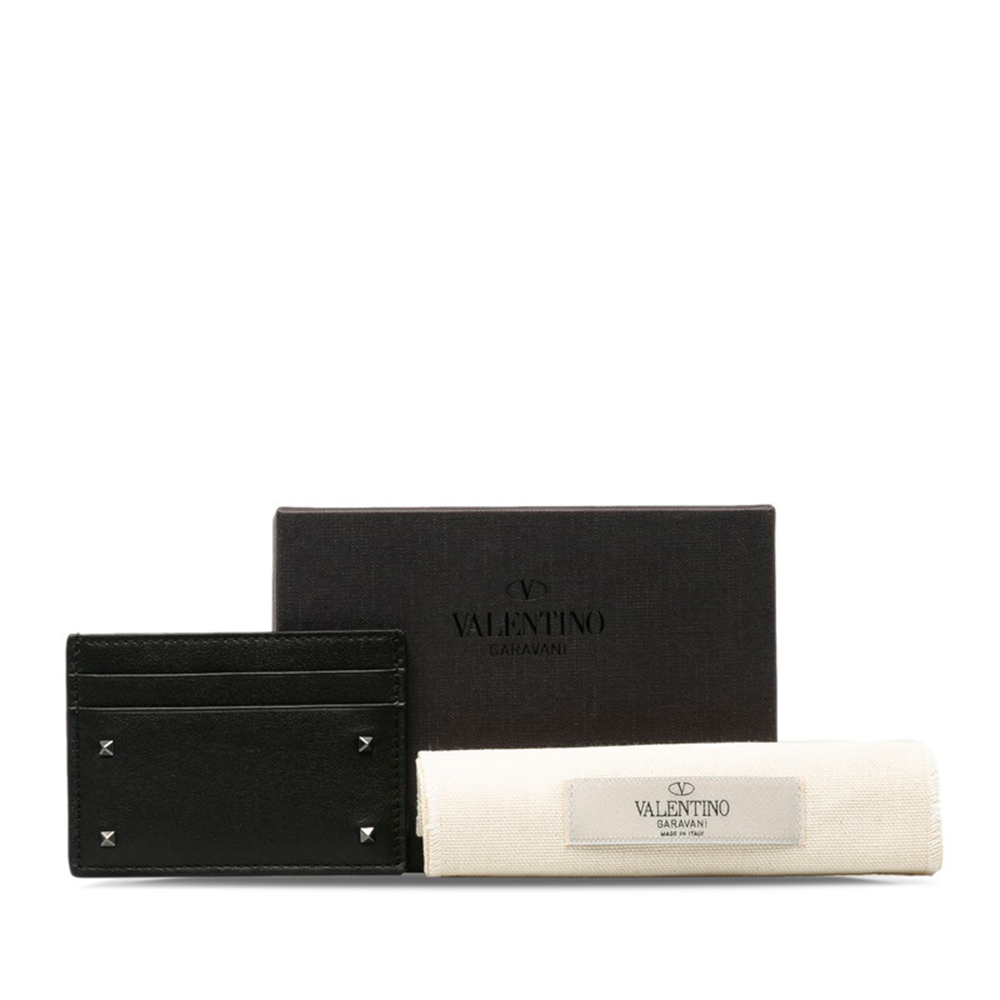 - 中古 美品 バレンティノ カードケース ロックスタッズ ブラック Aランク レザー VALENTINO メンズ レディース【送料無料】【西神店】