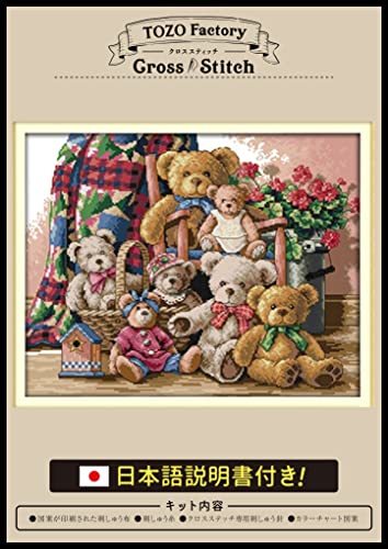 - (TOZOファクトリー) クロスステッチ 刺繍キット 刺繍 ししゅうキット 図柄印刷 日本語説明書付き 静物 14CT ぬいぐるみ テディベア