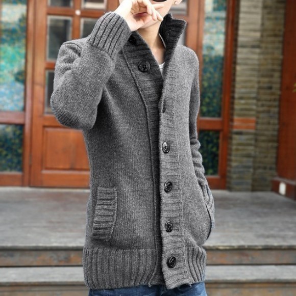 - 服 【グレー】 M 厚手 カーディガン ケーブルニット メンズ セーター ニット カーデ 上着 ジャケット アウター カジュアル 秋 冬 春
