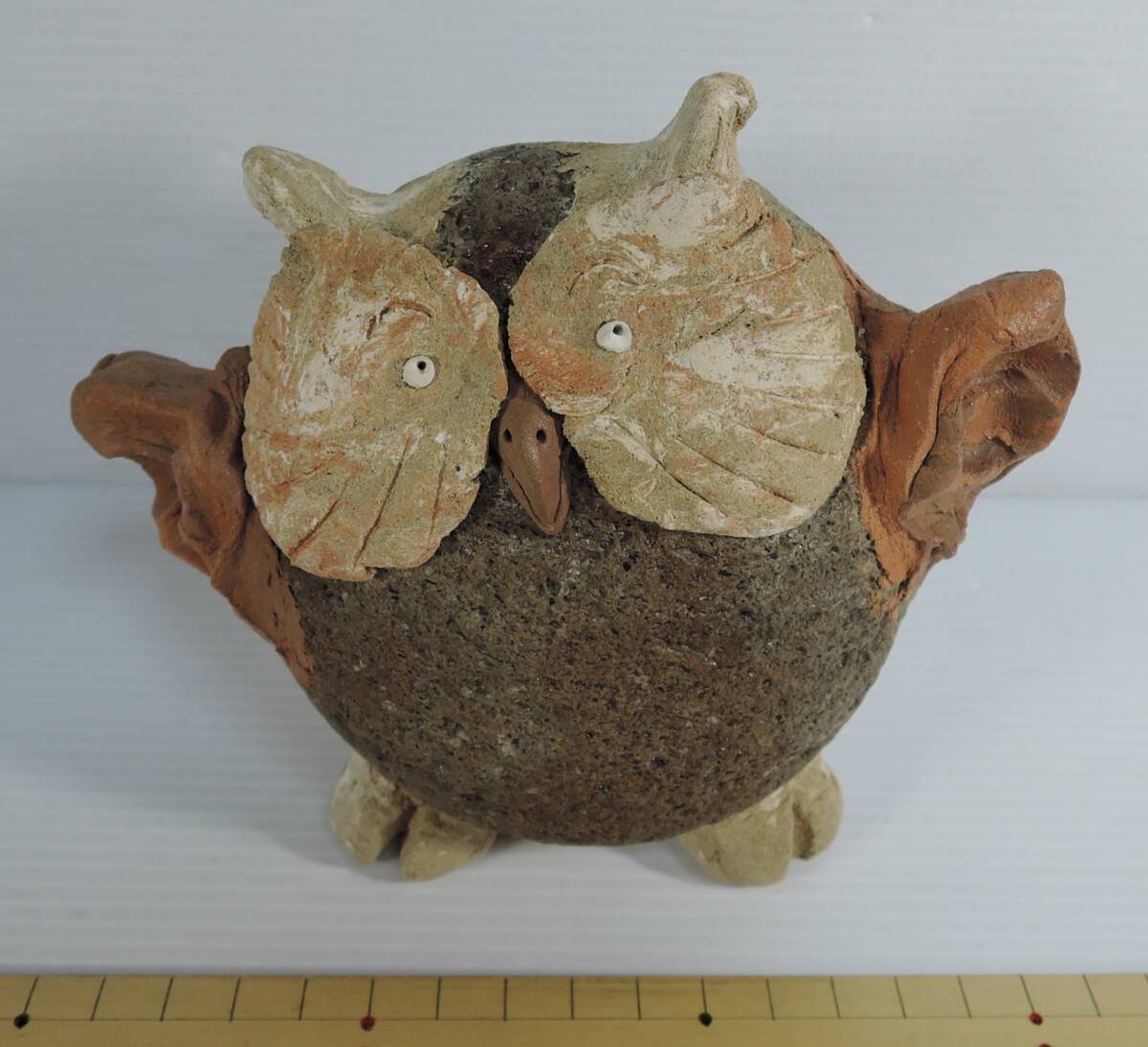 - ☆H06■自然石と粘土で作った フクロウ/梟 置物■作者サイン有り