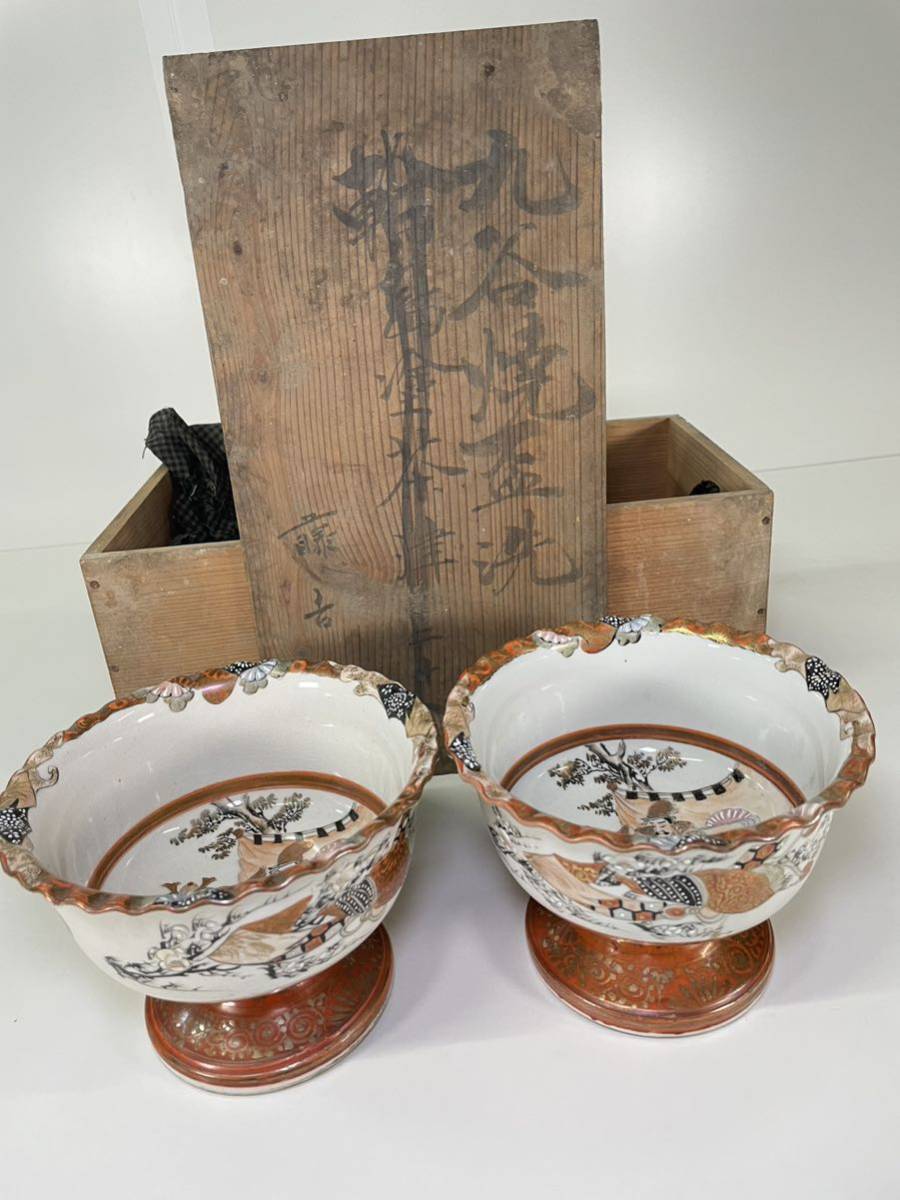 - t23 九谷焼 盃洗 2客 戦国武者図 赤絵 色絵 骨董 大正 明治 古美術