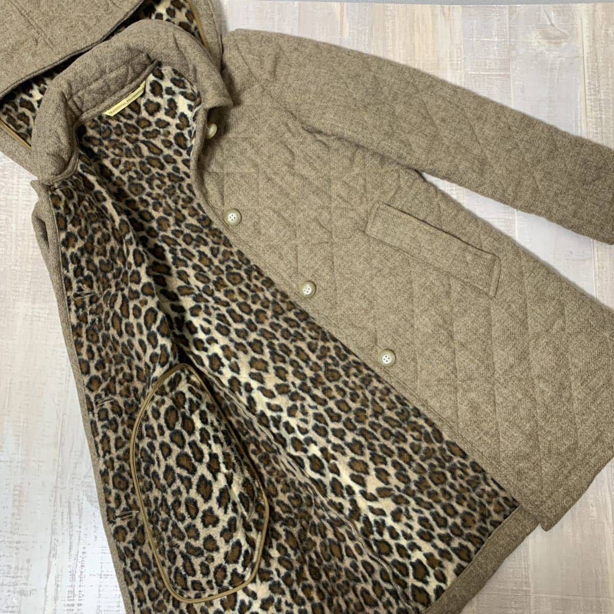 - 【裏地ヒョウ柄 美品】Traditional Weatherwear レオパード ウール100% キルティング コート ジャケット トラディショナルウェベージュ
