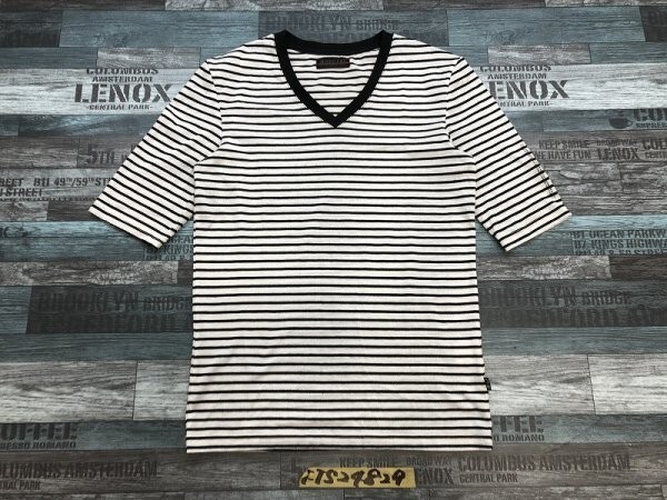 - MORGAN HOMME モルガン メンズ Vネック ボーダー 半袖Tシャツ 白黒