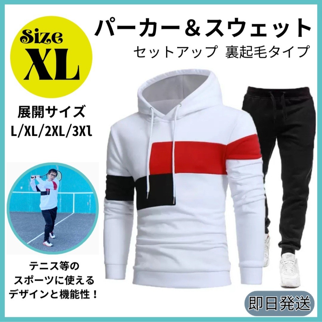 > XL スウェット セットアップ 上下セット パンツ パーカー メンズ レディース コーデ 韓国 スポーツ ルームウェア 白 黒 長袖 シャツ テニス