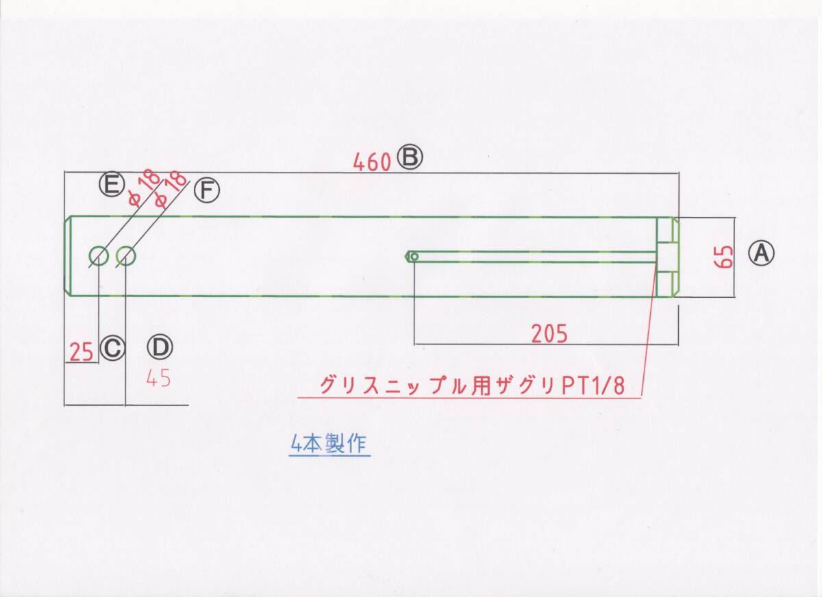 - NO 1730 Φ65用 全長460mm グリス穴付きバケットピン 4本1セット 重機用50kgの為、法人・屋号のみ