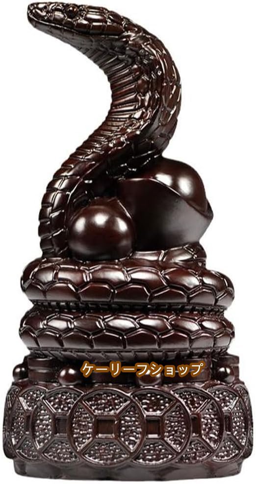 - 【ケーリーフショップ】木彫り像【巳年(へび)蛇】 干支お守り 木製彫刻 干支の置物 開運祈願 風水グッズ (黒檀, 高さ20 cm)