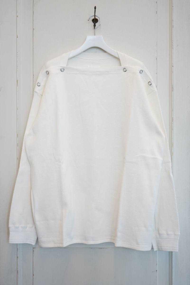 - The SoloIst ソロイスト (sc.0003AW20) shoulder buttoned boat neck heavy thermal shirt. カットソー 新品 白 WHITE 46 定価24090円