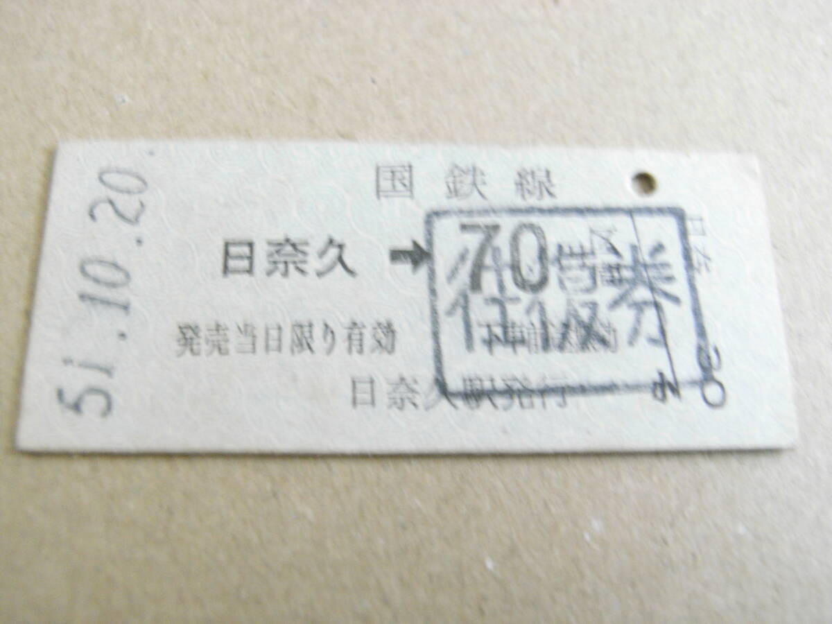 - 鹿児島本線 日奈久→国鉄線70円区間 昭和51年10月20日 日奈久駅発行