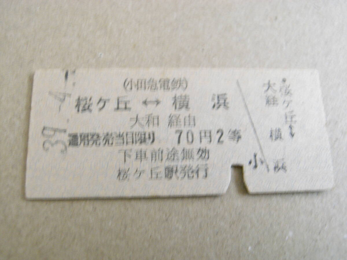 - 小田急電鉄相模鉄道連絡乗車券 桜ヶ丘-横浜 大和経由 70円2等 昭和39年4月 桜ヶ丘駅発行 相鉄