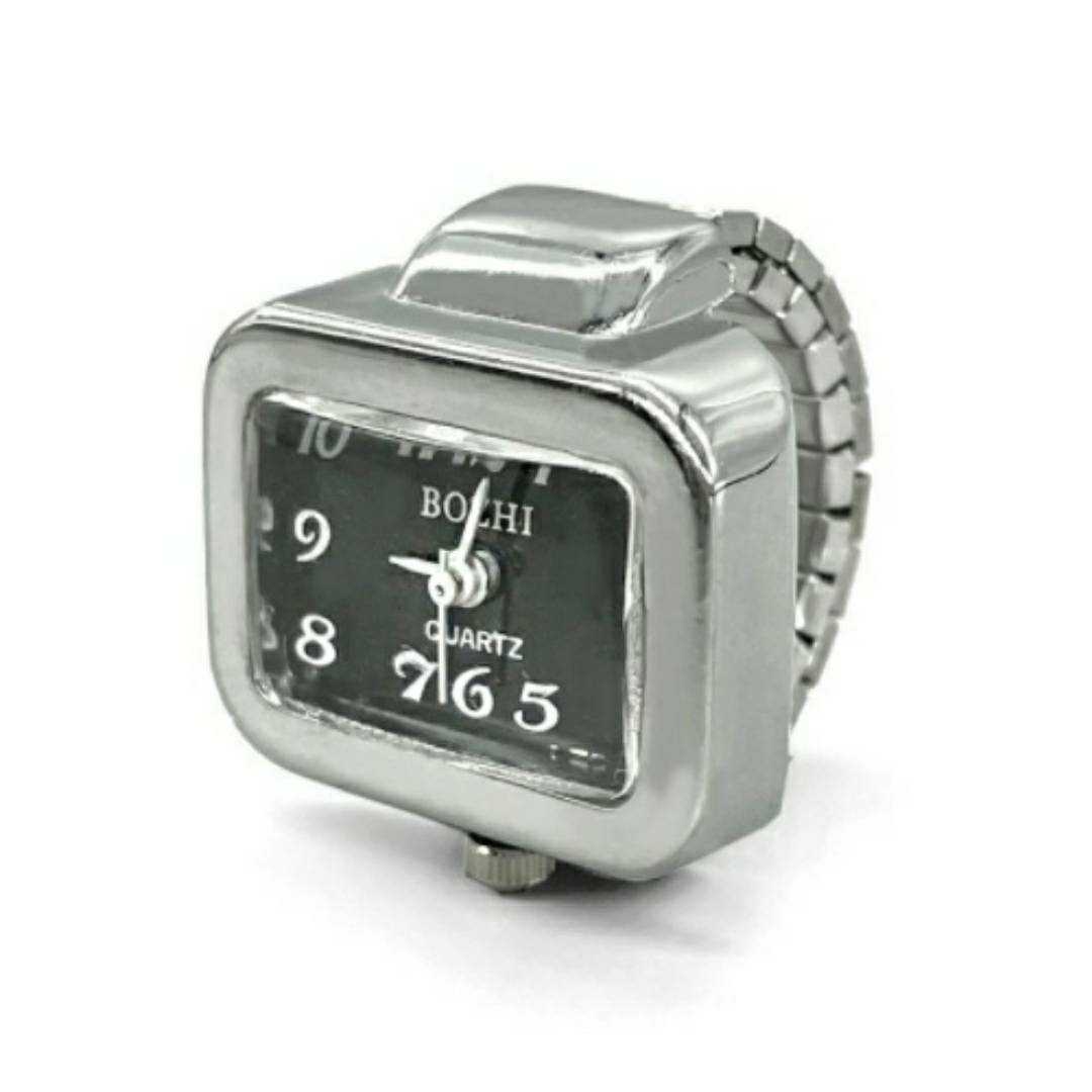 - 新品 未使用 指輪 時計 四角 フリーサイズ 銀 黒 10