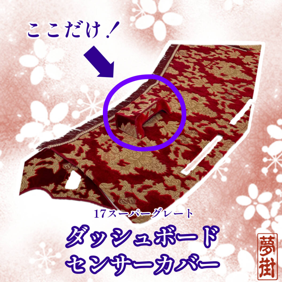 - つけまここだけシリーズ☆ダッシュボード(メーター上部)センサーカバー☆17スーパーグレート☆インぺルア・レッド☆金華山生地