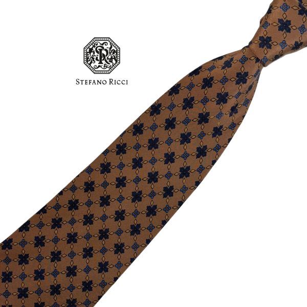 - ★銀座和光タグ付★未使用に近い★STEFANO RICCI 高級ネクタイ パターン柄 ブラウン系 ステファノリッチ USED メンズ服飾小物 中古 t817