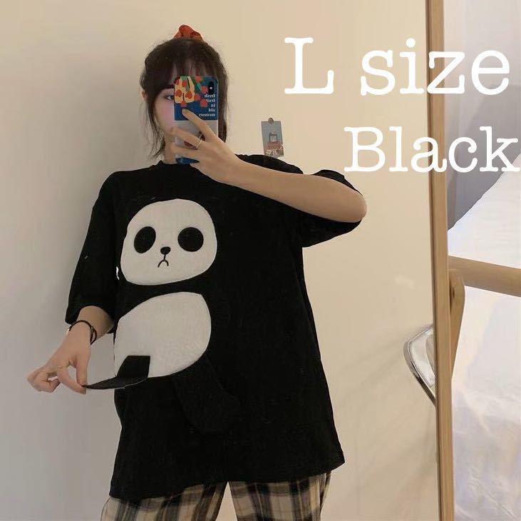 - Tシャツ ビッグシルエット 半袖 トップス カットソー パンダ シャツ オーバーサイズ レディース デザイン ブラック 黒 L