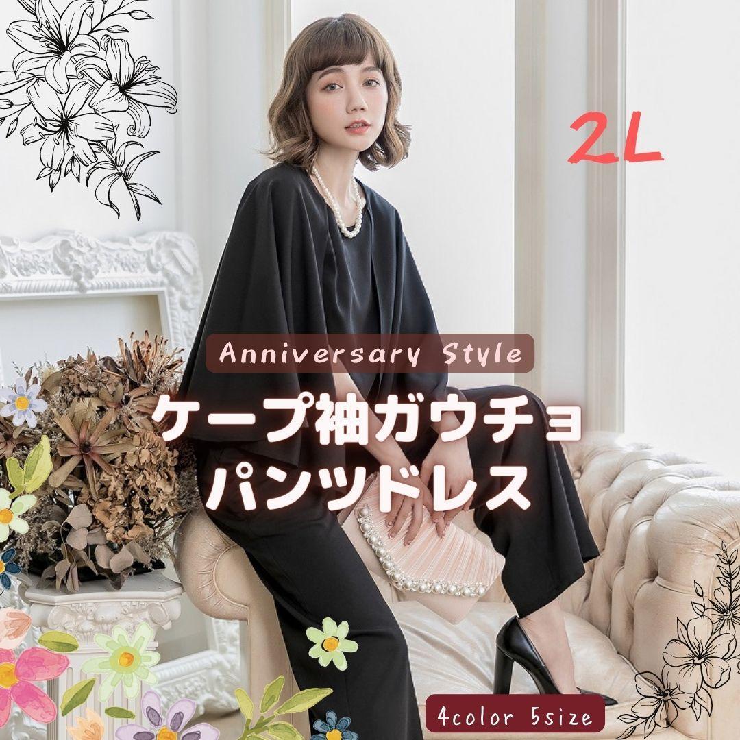 - 2L 黒 パンツスーツ 卒業式 パンツドレス ガウチョ 新品 即納 813367 XL セットアップ 上下セット マント ケープ ゆったり 体型カバー