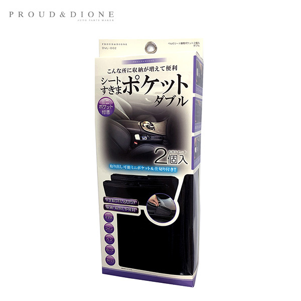 - べんりシート隙間ポケット 2個入り ブラック コイン&カードケース付 便利 収納 車内 プラウド DVL-002