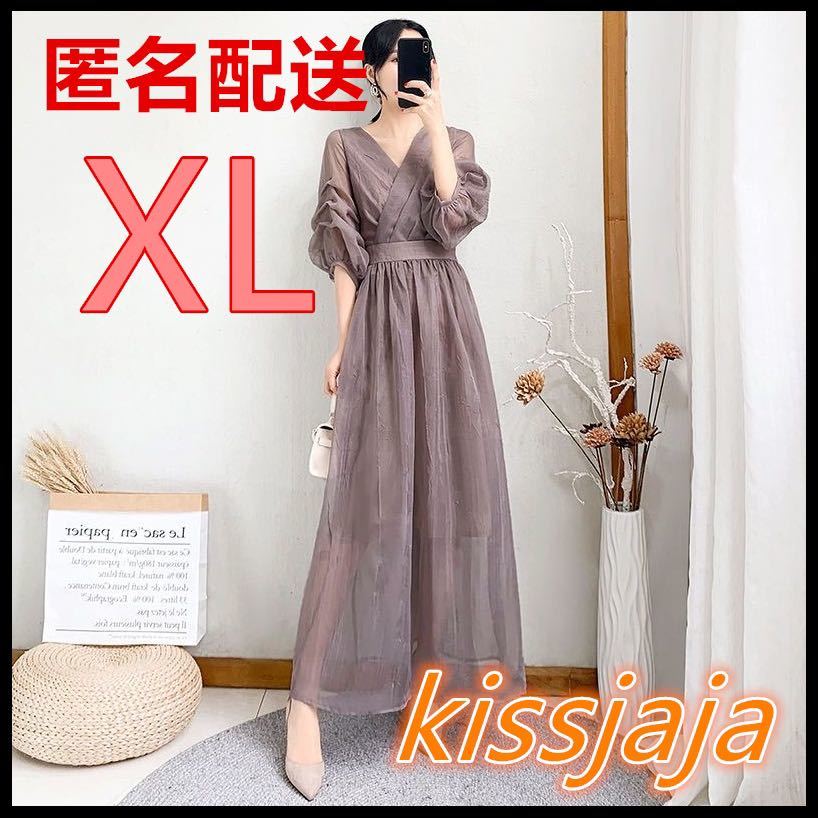 - 新品パーティードレス ワンピース ロング シフォン ロングワンピース 結婚式 二次会 お誕生日 七五三 入学式 卒業式 お呼ばれパープルXL