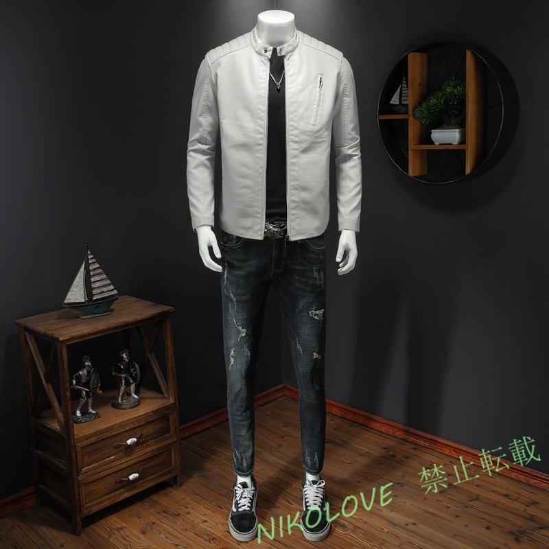 - 新品ライダースジャケット バイクジャケット レザージャケット メンズ 革ジャン 立ち襟 ブルゾン アウター カジュアル AA596