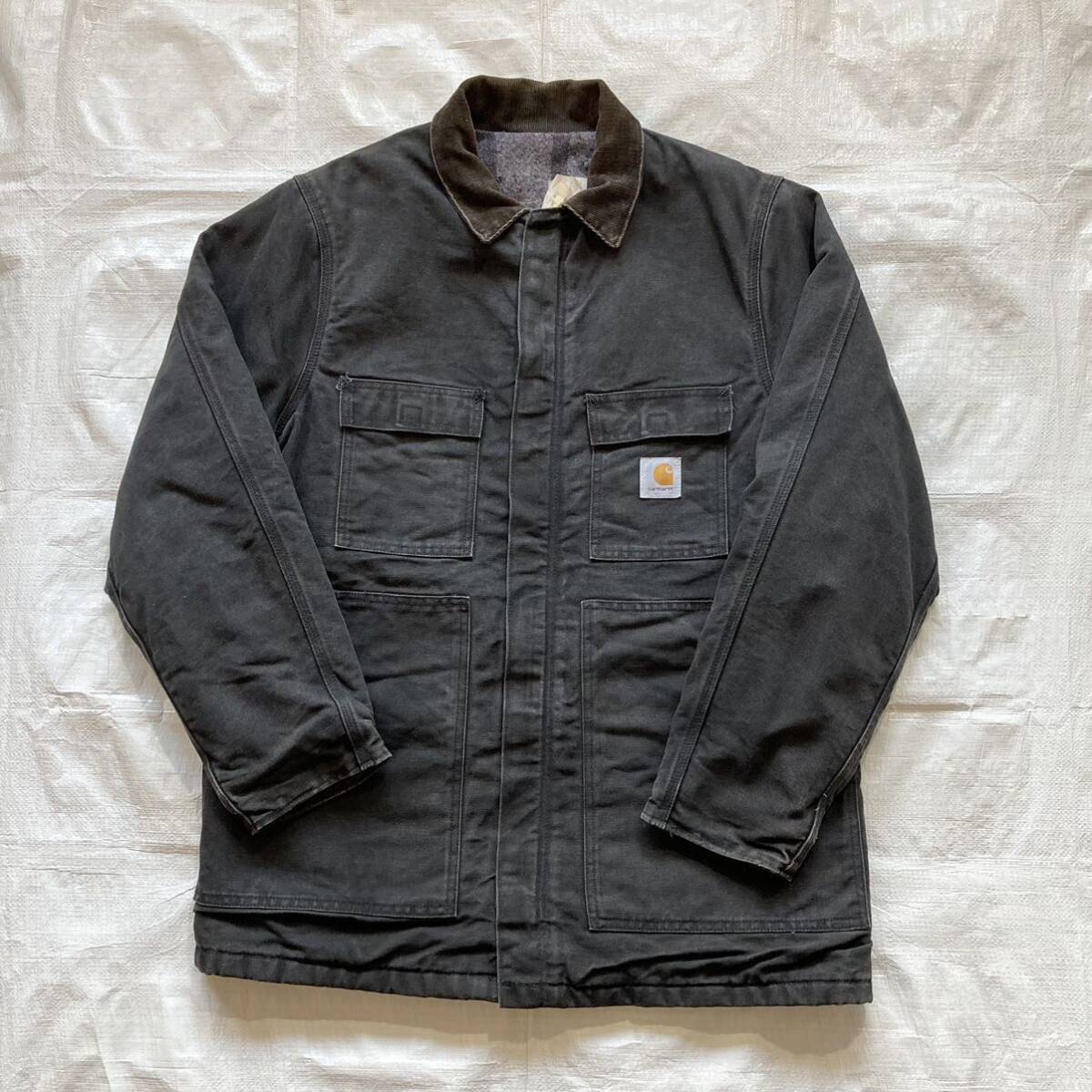- Carhartt カーハート USA製 裏地ブランケット ダック地 ジップアップ トラディショナルコート ジャケット ブラック 44