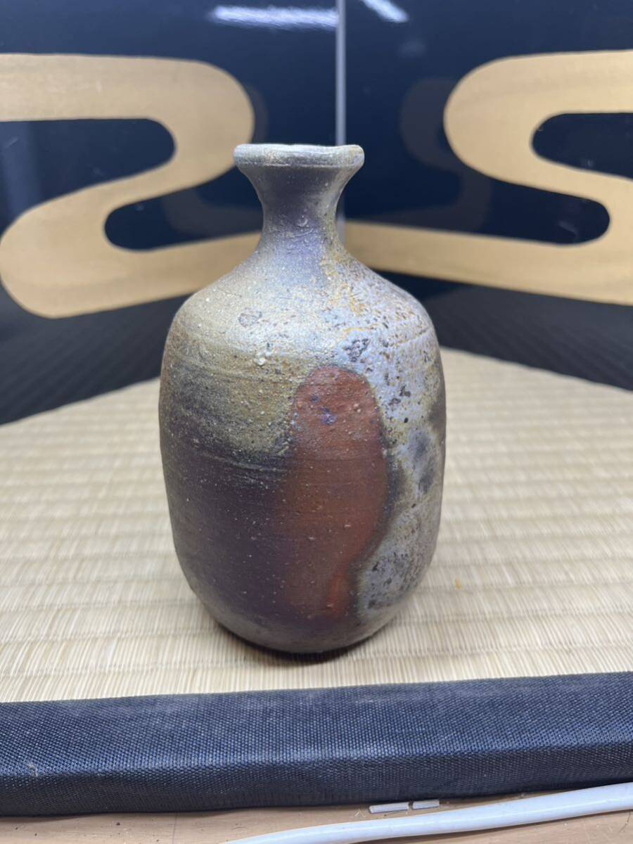 - 備前 人間国宝 金重陶陽 長男 岡山県重要無形文化財 金重道明 窯変 赤 徳利 伊部
