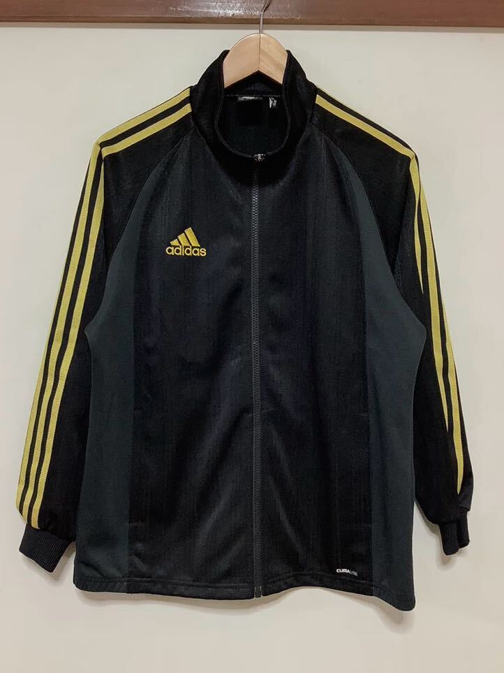 - さ1387 adidas アディダス トラックジャケット トラックトップ ジャージジャケット キッズ 160 ブラック/ゴールド ロゴ刺繍 CLIMALITE