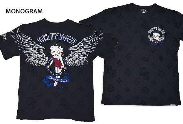 - BR×BETTYコラボ 半袖Tシャツ◆The BRAVE-MAN モノグラムXLサイズ BBB-2418 ブレイブマン ベティーちゃん 刺繍