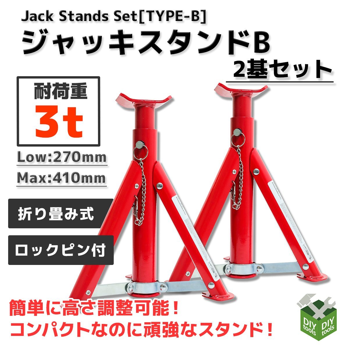 - 【2個セット】高さ5段階調整 ジャッキスタンド リジットラック 馬ジャッキ 3t 折りたたみ式 Bタイプ ●新品!