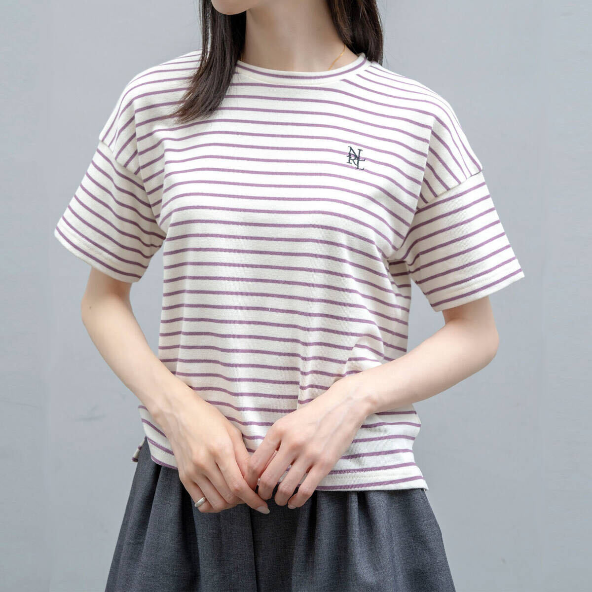 > Nora Lily ノラリリー Tシャツ BORDER BIG S/S TOP レディース パープル フリーサイズ(M/L)