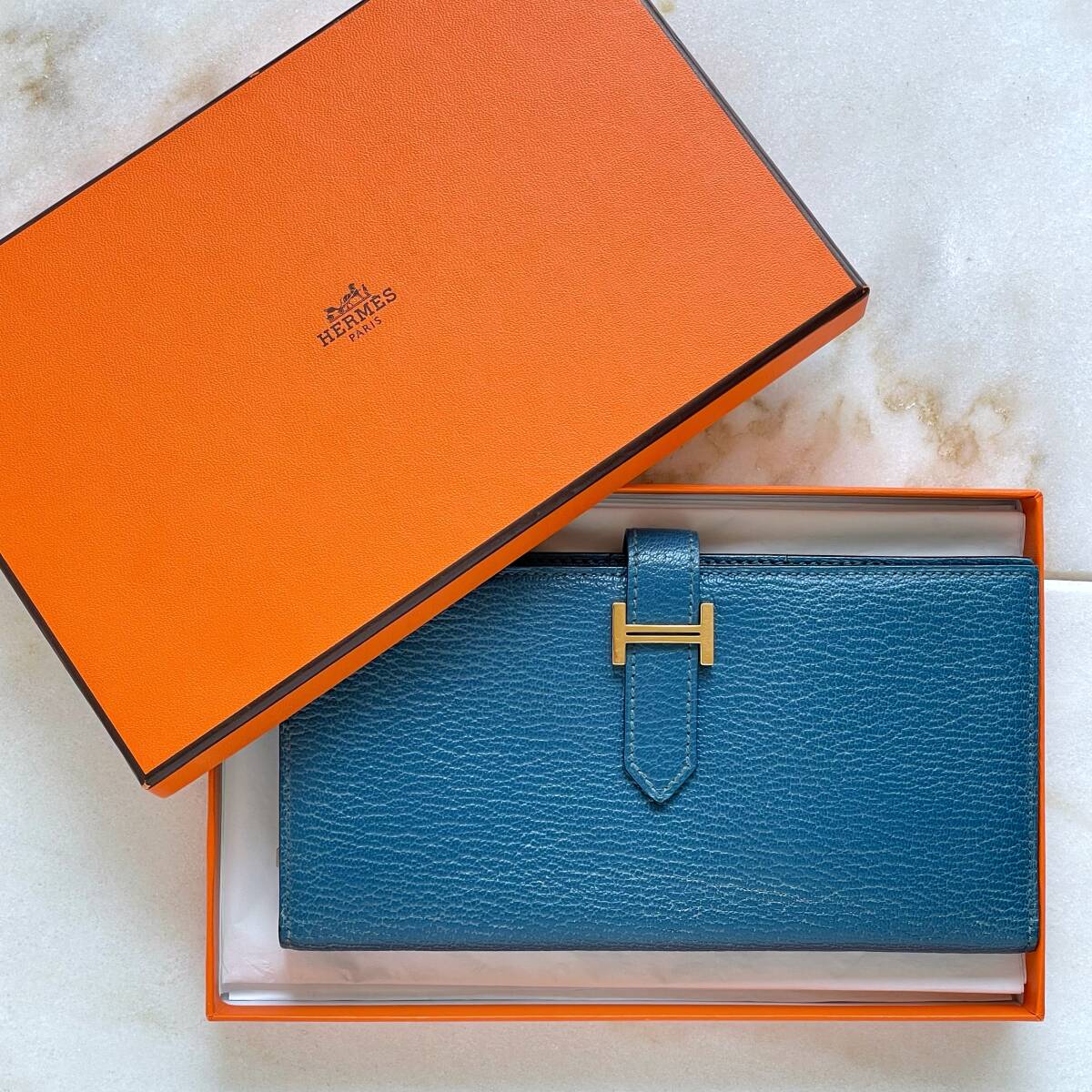 - HERMES エルメス ベアンスフレ シェブルミゾル ブルー 長財布 □Q刻印