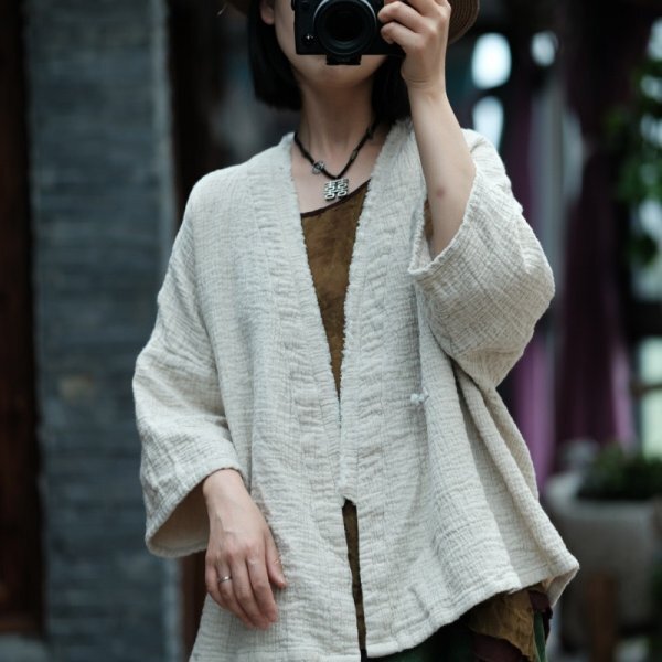 - lgn 2056カーディガン 羽織物 アウター 襤褸 アンティーク風 洋服ミックス ロマンファッション ブラック 亜麻色 綿麻混