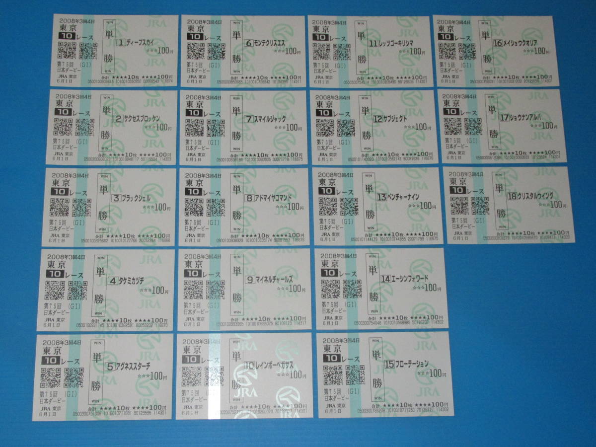 > 送料無料 懐かしの単勝馬券 ★ディープスカイ他全馬 全出走18頭 第75回 日本ダービー GⅠ 2008.6.1 即決!スマイルジャック ブラックシェル