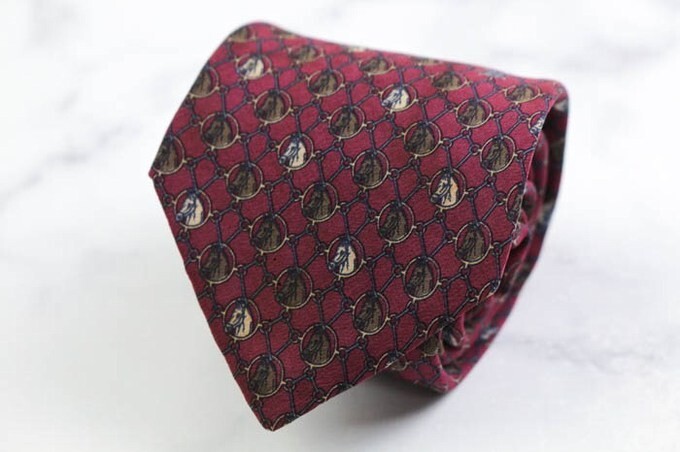 - セリーヌ シルク 馬車 動物柄 格子柄 スペイン製 ブランド ネクタイ メンズ ワインレッド CELINE