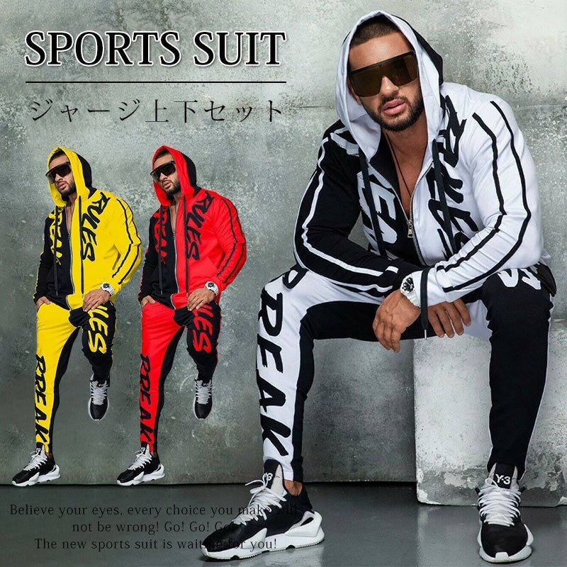 > スポーツウェア メンズジャージセットジャージ パーカーセットアップ 上下セット スウェット 長袖ルームウェア 部屋着 ライダース HE359
