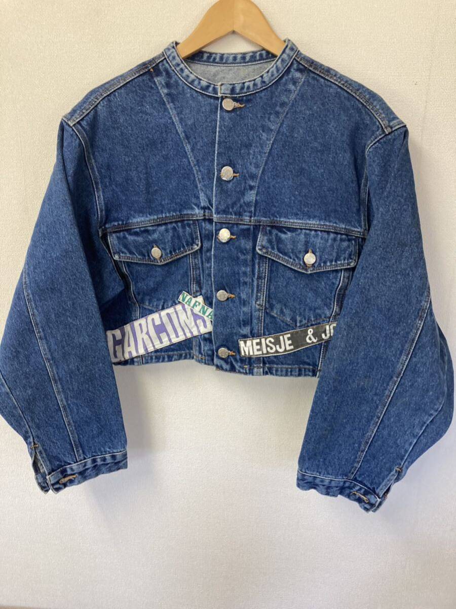 - 90‘sMODE DE FRANCE NAF-NAFノーカラーデニムジャケット ショート丈 gジャン M