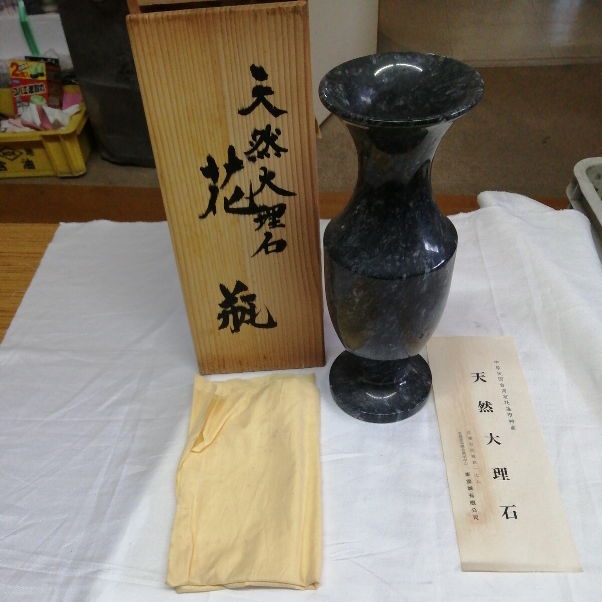 - 中華人民国台湾 花蓮市 天然石大理石 花瓶 木箱入 (約高さ28.8cm)