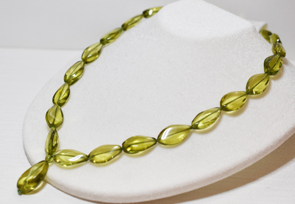 > Жソーティング付き リトアニア産天然グリーンアンバードロップカット 琥珀 22.0g 49.2㎝Y字ネックレス