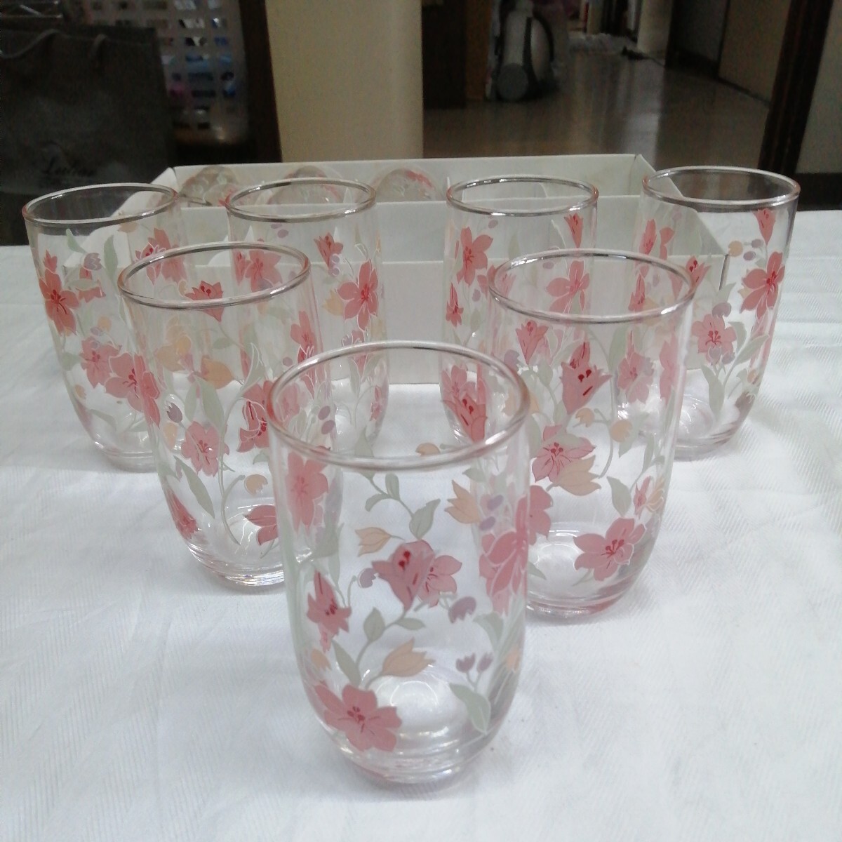 - 箱入未使用品 計10客 花柄 タンブラー グラス ガラス 華 アンティーク WARE 昭和レトロ