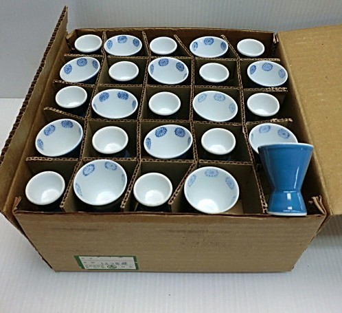 - ★ 81701 お猪口 ぐい呑み 50個 「 菊 」トルコ青磁 有田焼 直径4x高さ5cm 白 青 酒器 アルコールグッズ 陶器 長期在庫品 レトロ ★*