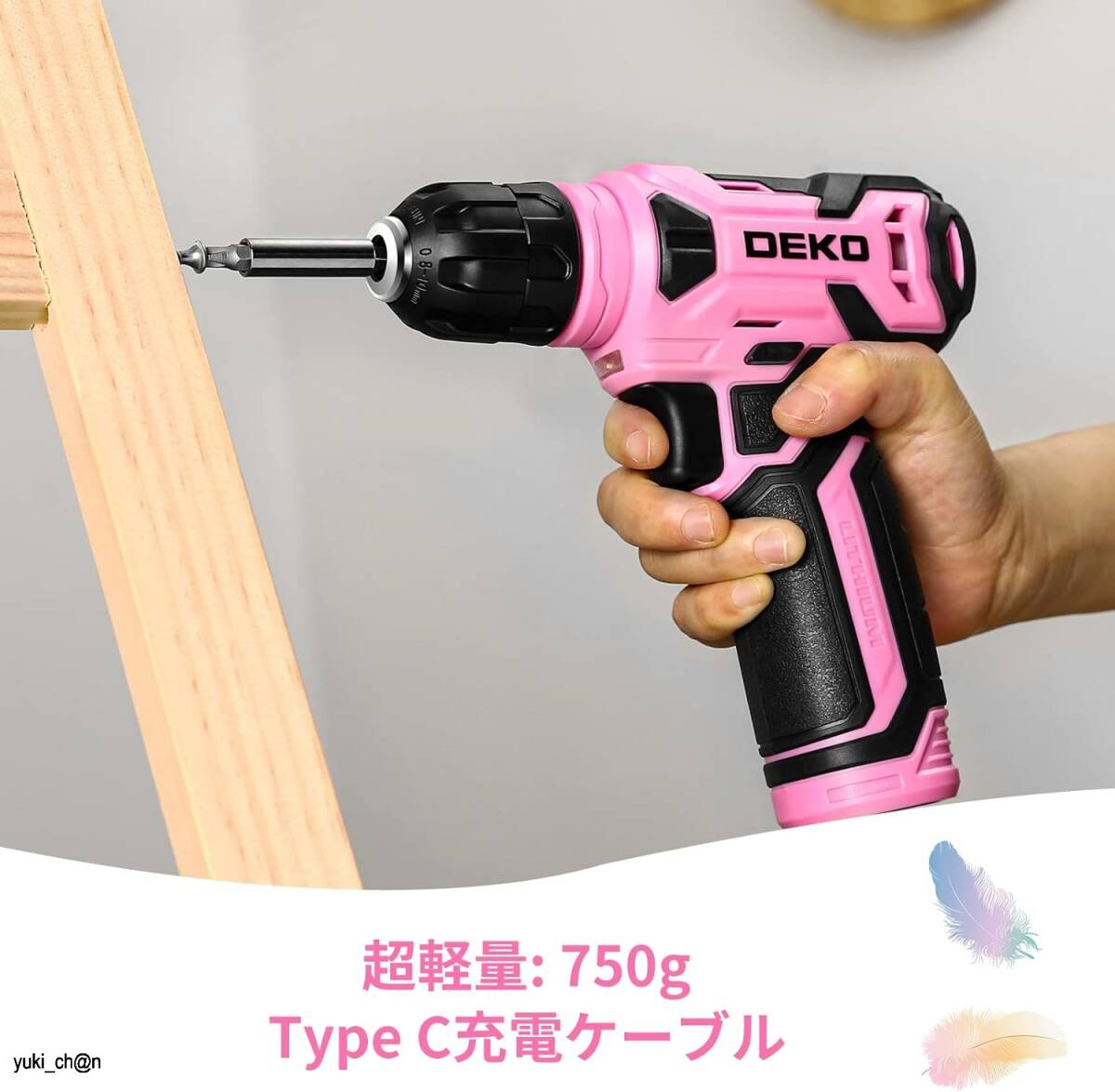 - 電動ドリル ドリルドライバー 8V ピンク キーレスチャック 42点組付属品付き LED Type-C充電ケーブル付 電動穴あけ ネジ締付工具